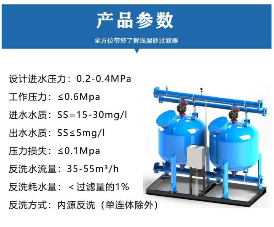 反洗系統有手動,半自動和全自動三種方式,分別可通過手動按鈕、內部時鐘、PLC、壓力差或者管理系統進行啟動。反洗時間長短可調, 出廠時設定為3分鐘。系統內部有一個計時器,通過這個計時器可以為特定的工藝情況設定適合的反洗時間。通過設計特別的控制器, 可以實現集中或遠程等高要求的控制。 可以有不同的安裝方式??梢宰鳛楠毩⒌倪^濾系統,利用現有工藝中的供水泵,當然,如果是作為旁濾,也可以單獨配備它自己的泵。 也可以多個處理單元安裝在公用管道上,這樣可以實現此系統過濾能力。所有過濾介質都是經過精心挑選,洗滌,干燥,過濾精度可以達到0.45微米。均質高性能的濾料配合特別設計的過濾器上下布水, 確保在高流速下也可以達到非常好的過濾效果。 整體系統,出廠前所有的內部管道,控制連鎖線都以完備,安裝系統只需要連接外圍的管道和供電即可,安裝方便。